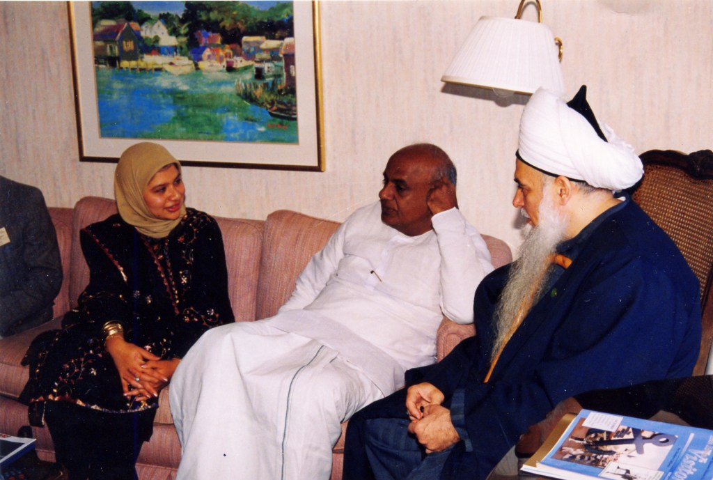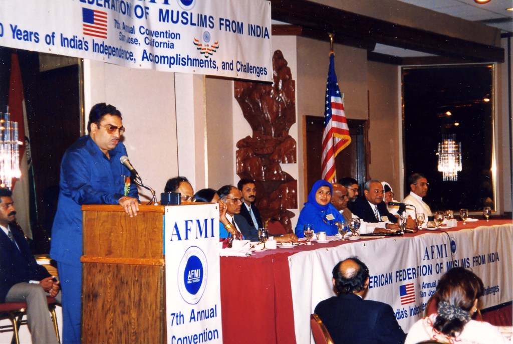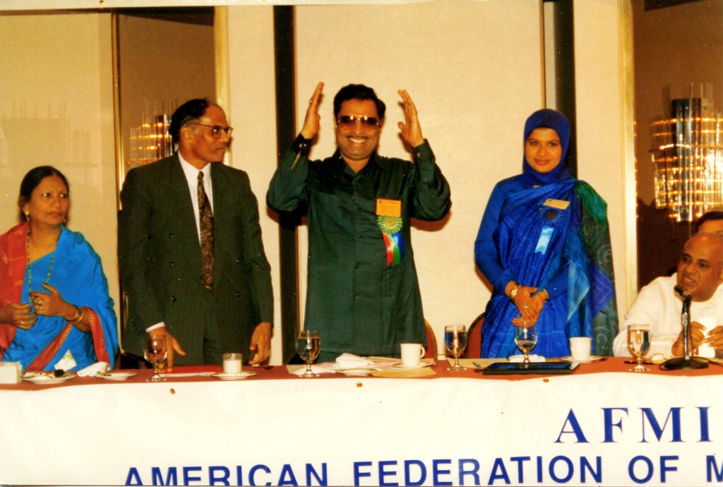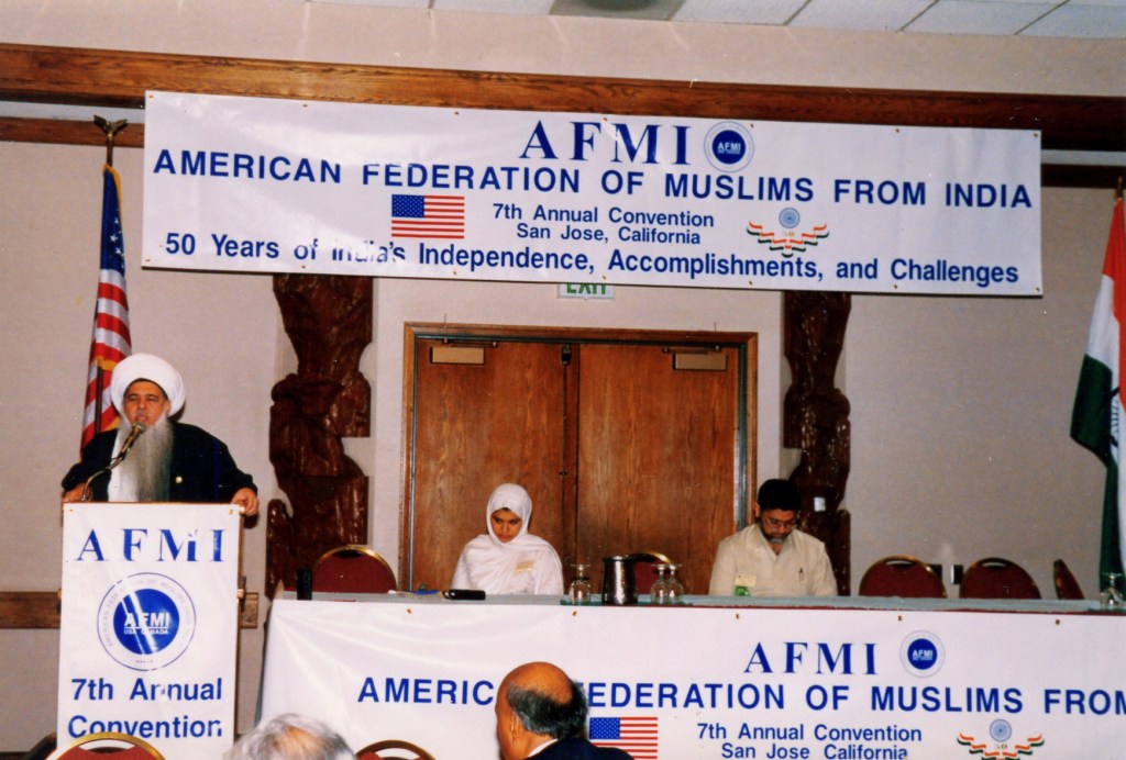 The most heavenly recitation of the Quran ul Kareem by His Holiness, Syedna wa Mawlana Shaykh Hisham Kabbani.C.M. Ibrahim, civil aviation minister of India and Dr. Aslam Abdullah.Left to right: Consul General of India (and wife), San Francisco, Civil Aviation Minister of India, C. M. Ibrahim, Simala Kureishy, His Excellency Deve Gowda, ex-Prime Minister of India.Dr. Muzammil Siddiqi receiving an award from His Excellency Deve Gowda ex- Prime Minister of India.Dr. Abidullah Ghazi, author, educator and poet, executive director of IQRA International Educational Foundation.Left to right: Simala Kureishy, His Excellency Deve Gowda ex- Prime Minister of India, Dr. A. R. Nakadar, general secretary AFMI.Speech by Dr. A. R. NakadarSpeech by the civil aviation minister, C. M. Ibrahim.His Holiness Mawlana Shaykh Hisham, His Excellency Deve Gowda ex Prime Minister of India, and Dr. Abidullah GhaziDr. Mateen Siddiqui and conference attendee.Introducing His Holiness Mawlana Shaykh Hisham Kabbani, to His Excellency Deve Gowda, as a scholar of real knowledge, which is based on the foundation of love, as described in Kabir Das’s doha – पोथी पढ़ि पढ़ि जग मुआ, पंडित भया न कोय: ढाई आखर प्रेम का, पढ़े सो पंडित होय:A conference sponsor accepts Islam with His Holiness Shaykh Hisham Kabbani.Dr. Aslam Abdullah with Syedna wa Mawlana Shaykh Hisham Kabbani.Photo exhibit on ‘India’ at the conference by MIT Professor, Dr. Saeed.